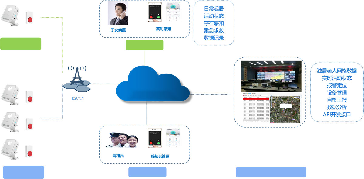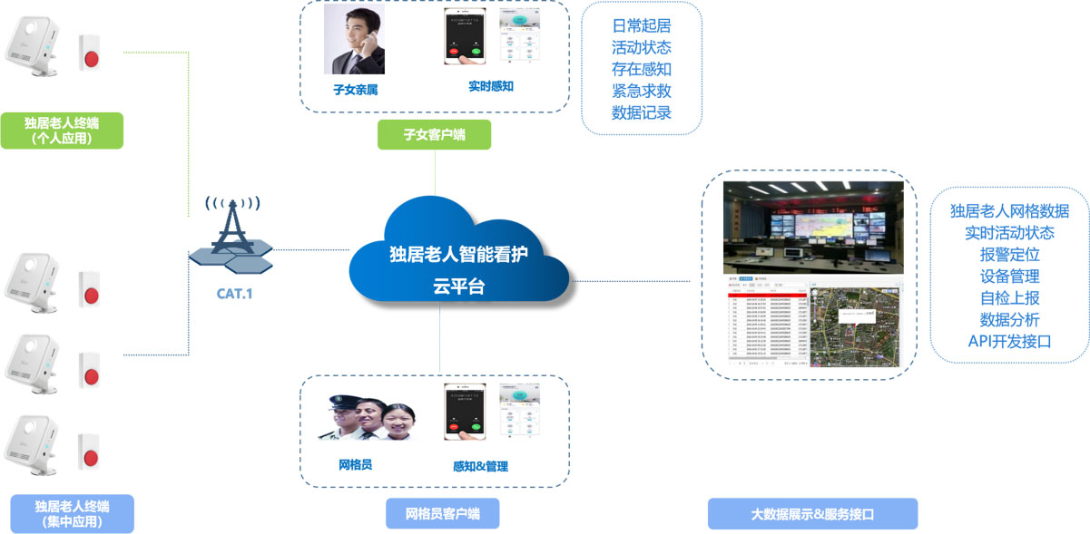 空巢獨(dú)居老人看護(hù)及分散供養(yǎng)群體巡視探訪方案,是指面向民政及基層政府民生治理服務(wù)、智慧社區(qū)建設(shè)項(xiàng)目中,面向空巢獨(dú)居老人采用智能化終端+平臺(tái)+人力輔助的閉環(huán)看護(hù)模式代替單純依靠人力逐戶走訪的巡訪關(guān)愛,具有高效率、低成本、全天候,全實(shí)時(shí)看護(hù)的優(yōu)勢(shì)。