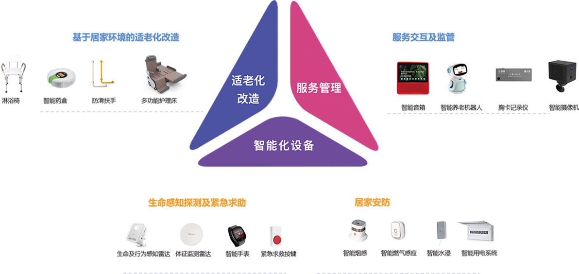 合睿家庭養(yǎng)老床位建設方案,是指對符合條件的目標用戶進行居住環(huán)境和生活空間的適老化 改造,提升生活的便利性與舒適性。同時加載智能傳感設備和健康感知設備,以對目標用戶的 全時智能無感看護(生命安全和快速應急救護)為重心,并為機構服務上門實施提供便捷的空 間物理條件,為用戶健康檔案建立及機構服務考核監(jiān)督等提供技術支撐。