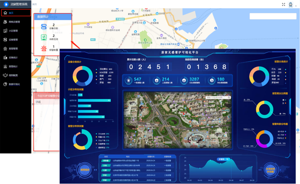 合睿家庭床位管理平臺,是基于靈犀、靈感毫米波雷達設備及配套煙感、燃氣、尿濕感應等智能設備面向居家養(yǎng)老群體的遠程智能看護管理軟件,實現(xiàn)遠程智能看護,開放數(shù)據(jù)接口與第三 方綜合養(yǎng)老服務平臺進行無縫對接。