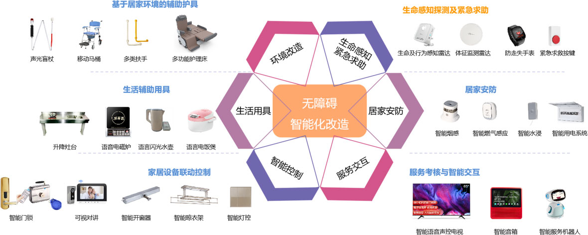 合睿殘疾人無障礙“智能化”改造方案,是指在無障礙改造過程中,面向居家安全、生命 感知行為分析、居家健康監(jiān)測、家居智能化控制方面,融入各類智能感知和控制設(shè)備,提升生 活的便利性與舒適性,以對目標(biāo)用戶的全時智能無感看護(生命安全和快速應(yīng)急救護)和家居 智能化控制為重心,實現(xiàn)傳統(tǒng)無障礙改造的體驗度提升及價值創(chuàng)新。